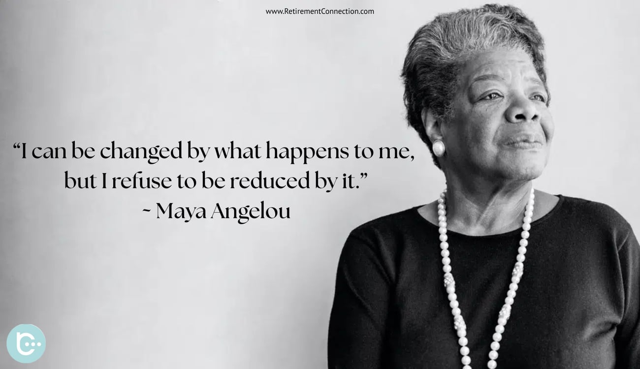 "I can be changed by what happens to me, but I refuse to be reduced by it." ~ Maya Angelou